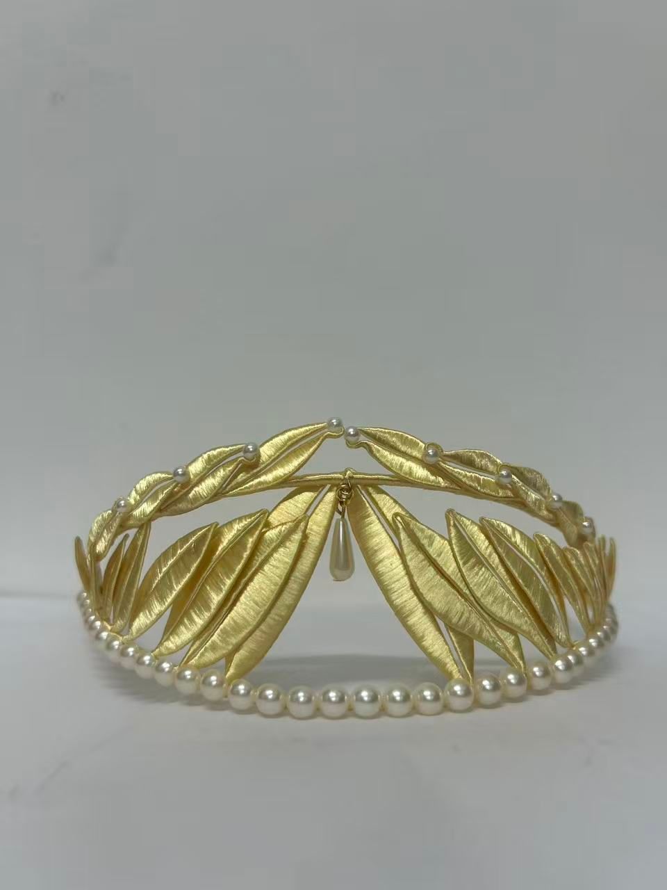 黎艳丽——缠花手工作品《珠叶金枝·珍珠梦冠》