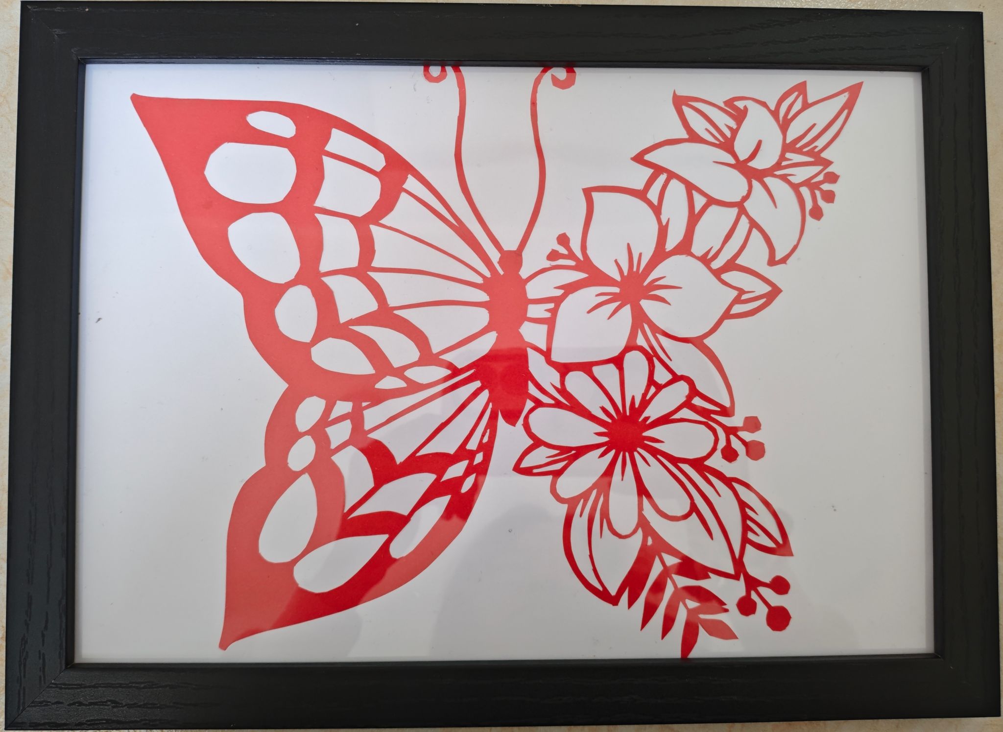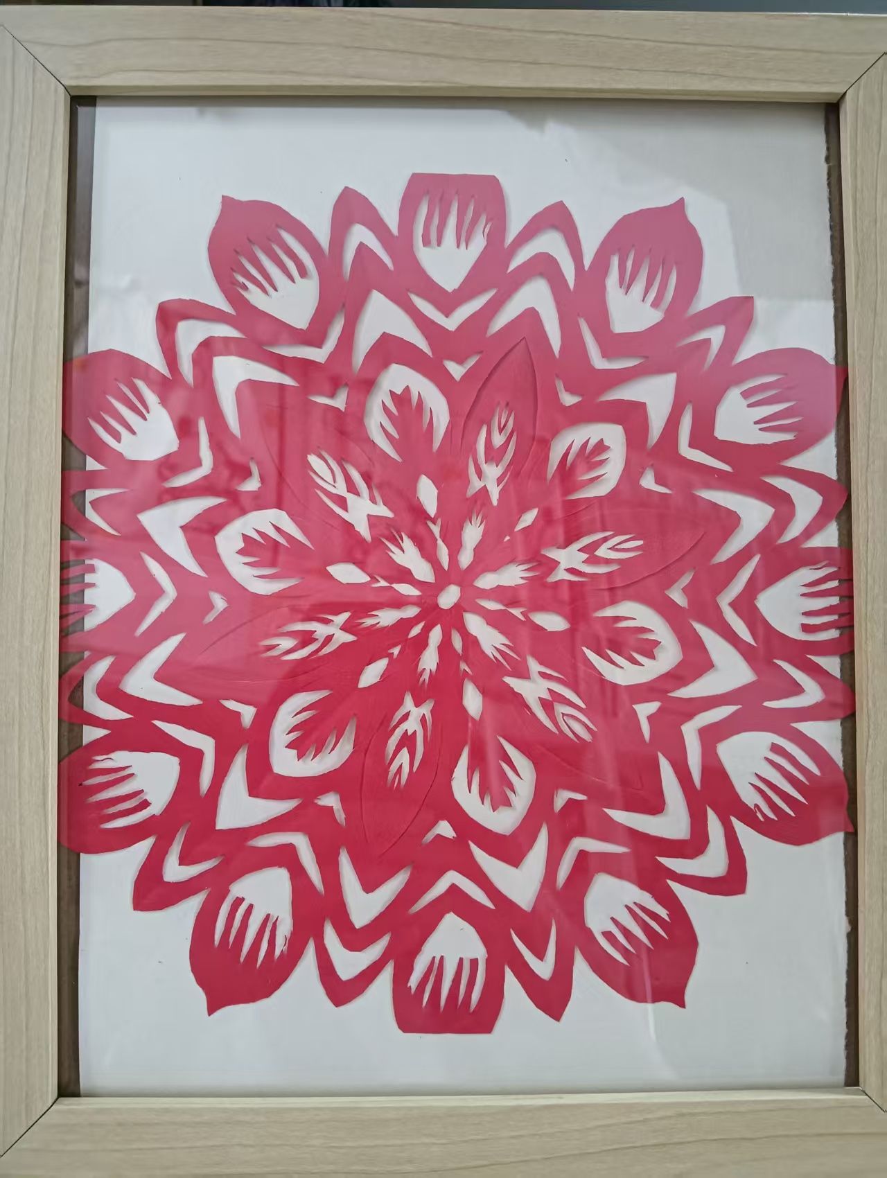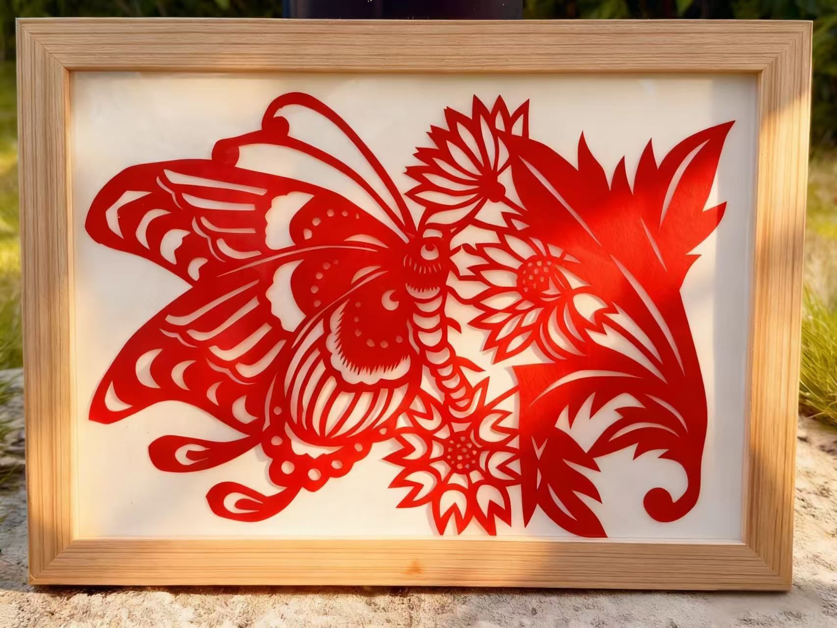 陀月凌——剪纸作品《红蝶衔花,素模映艺》