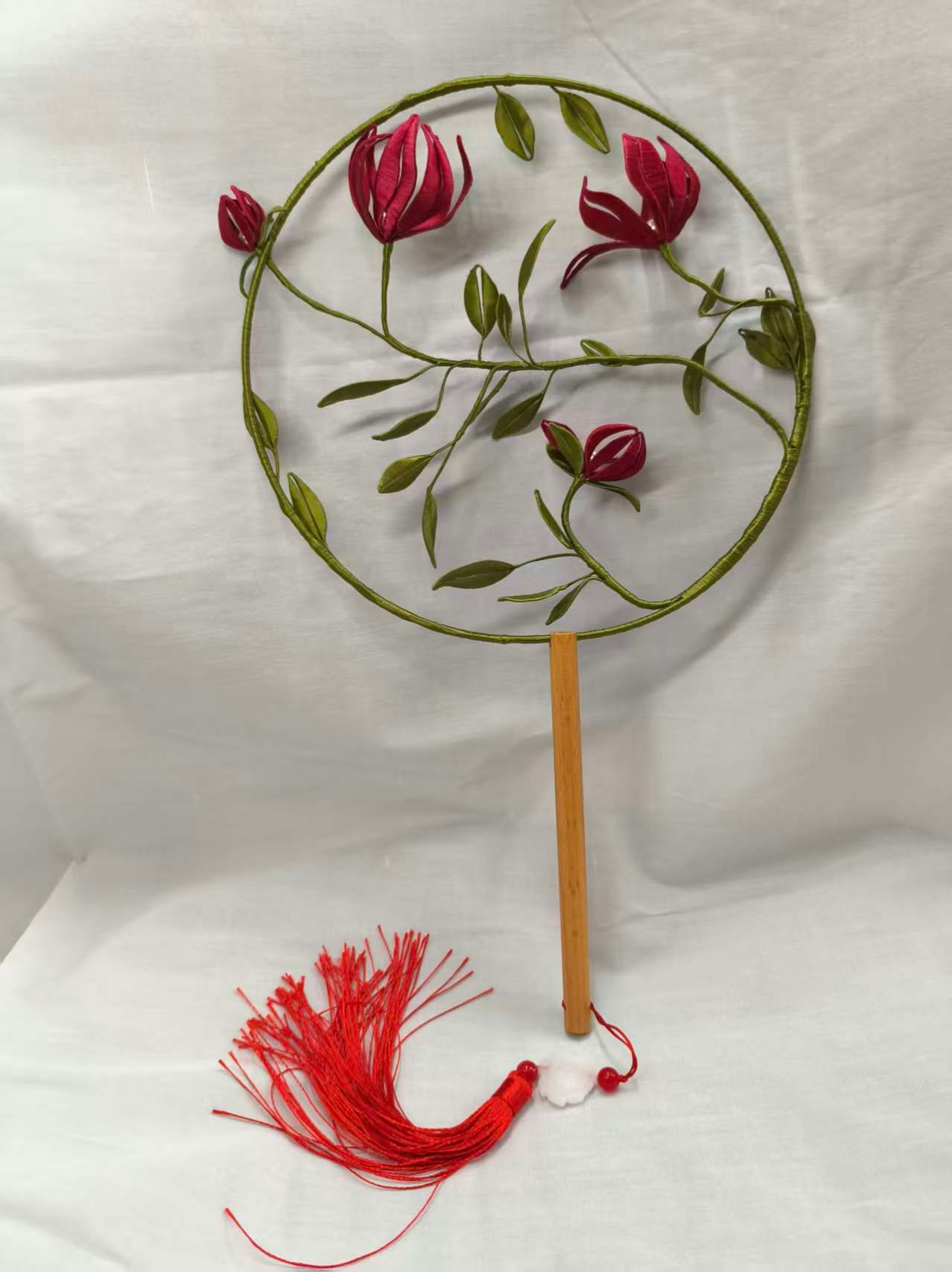 骆界莹-缠花作品《红萼缠枝翠扇屏》