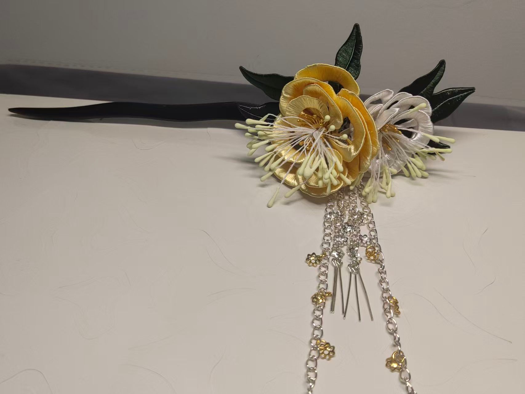 黎冰冰——簪花作品《双花并蒂锁花苏》