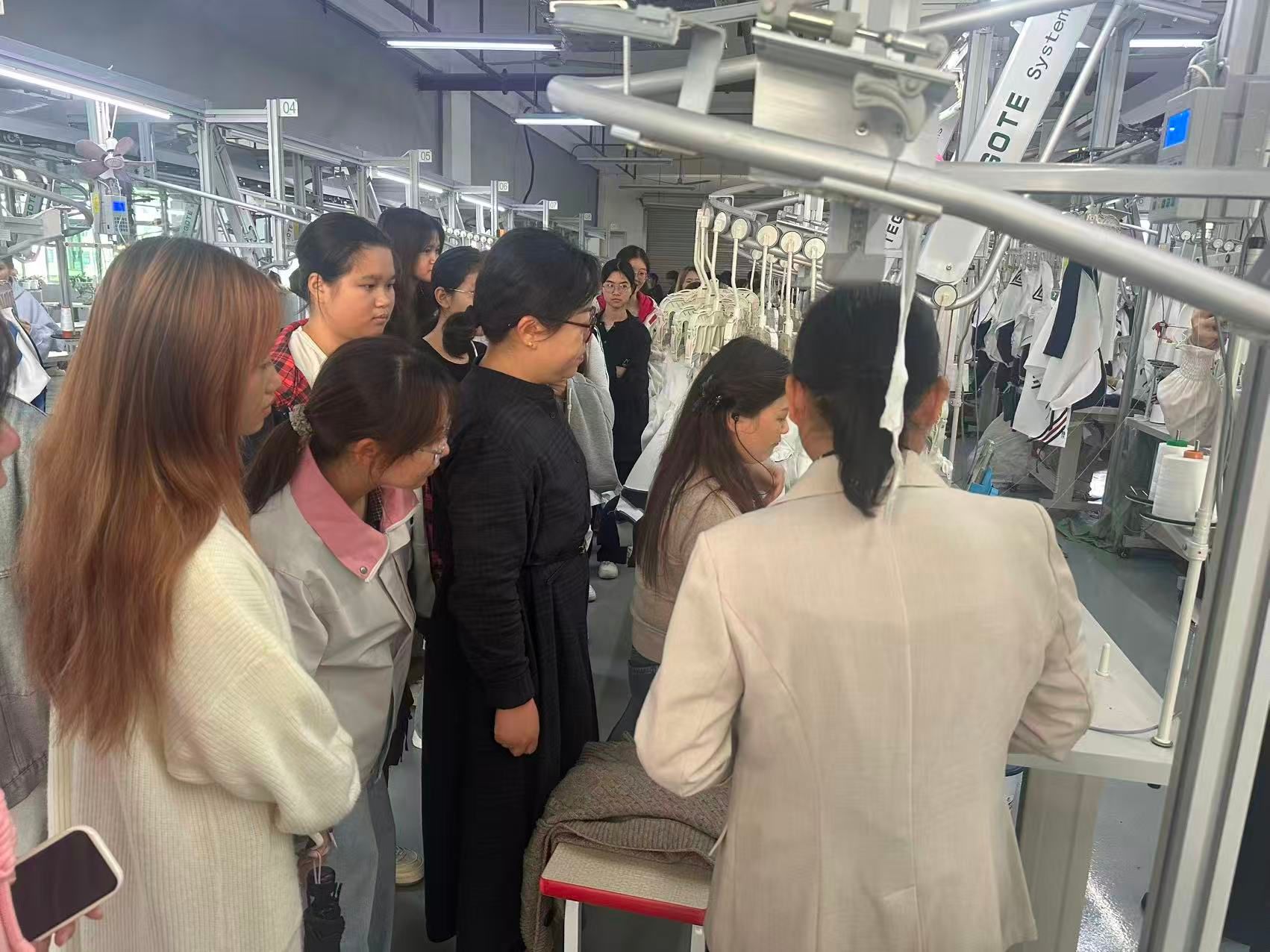下午2时30分,25服装2、3班学生在专业老师的带领下,前往合作企业——广吉服装厂开展企业实践。在服装企业生产车间,学生近距离观摩校服生产线运作流程和智能吊挂系统,了解我市、区内外中小学校服制作中的排版、裁剪、缝制、整烫、品控等环节,并在一线技术人员的指导下进行技能实践操作。通过真实生产环境的沉浸式学习,学生不仅加深了对服装生产工艺全链条的认知,也切身感受到企业对于技能、效率与品质的具体要求。