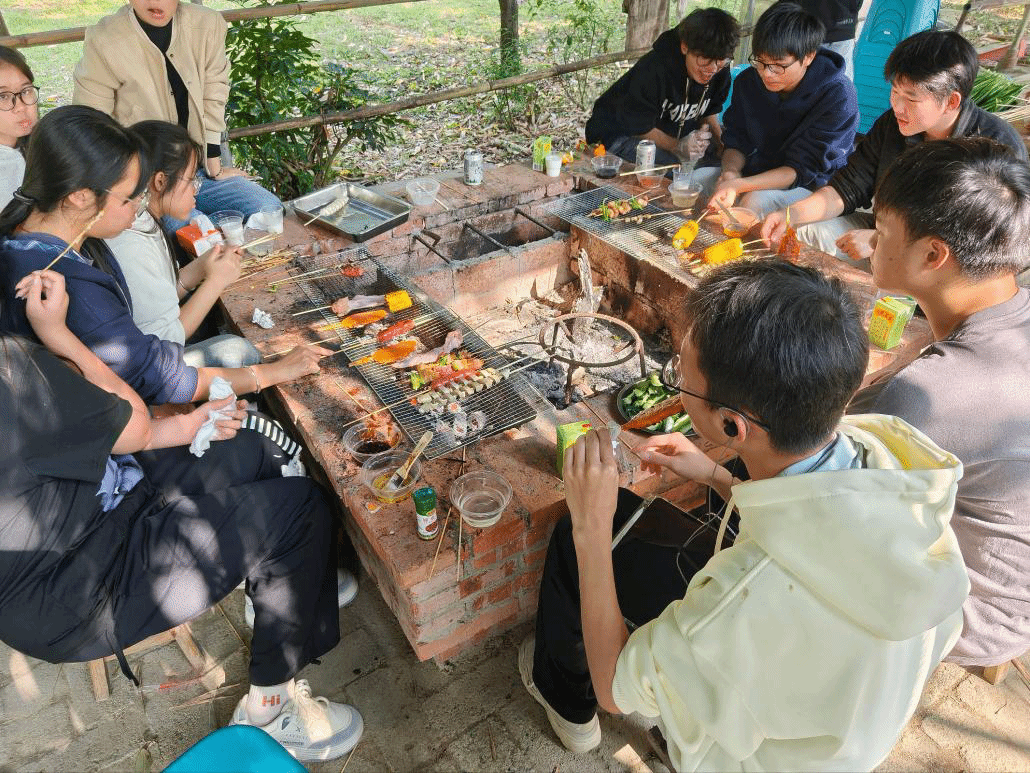 活动在清晨的食材准备中拉开序幕。同学们分工协作,有序进行食材清洗、串制、调料准备等工作,展现了平日里在专业学习中培养出的细致与创意。不少同学发挥专业特长,将食材摆放得色彩协调、造型生动,引得众人连连称赞,体现了专业特色与生活趣味的巧妙融合。