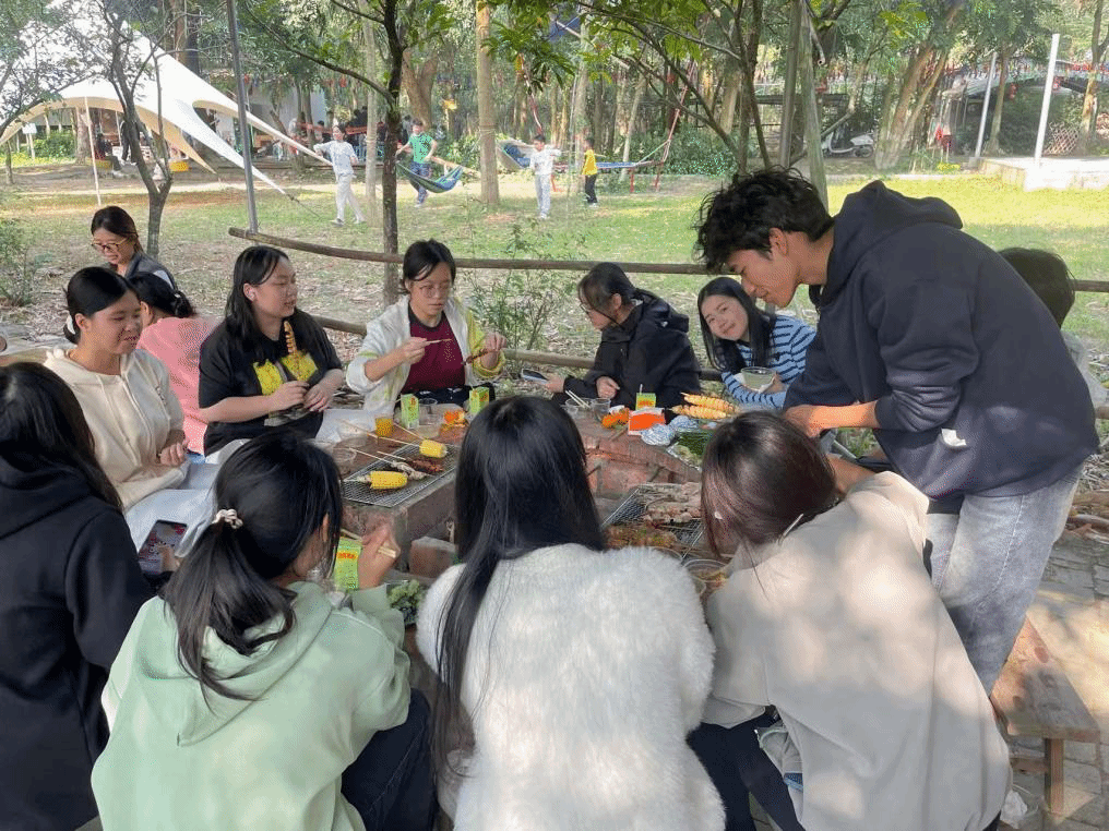 为增进班级凝聚力、丰富课余文化生活。人物形象设计专业2503班全体同学于12月6日在玉林市桃源岛农庄开展一次以“凝心聚力,共创美好”为主题的户外烧烤团建活动。