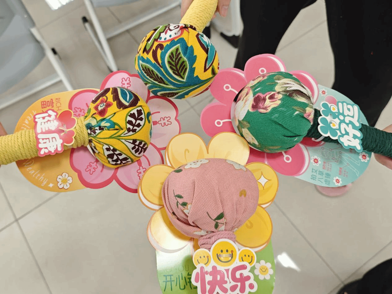 艾草锤体验区同样热闹非凡,该专业学生现场教授传统艾草锤制作技艺,参与的师生通过选配艾草、棉布包裹、手工缝制等工序,制作出兼具实用与美感的养生器具。现场欢声笑语不断,师生情谊在互动中升温。