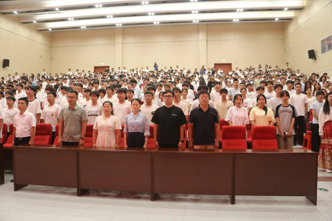 在激昂的国歌声中,全体师生肃立,奏唱中华人民共和国国歌。庄严的旋律回荡在校园上空,也为新学期的开始奠定了庄重而神圣的基调。
