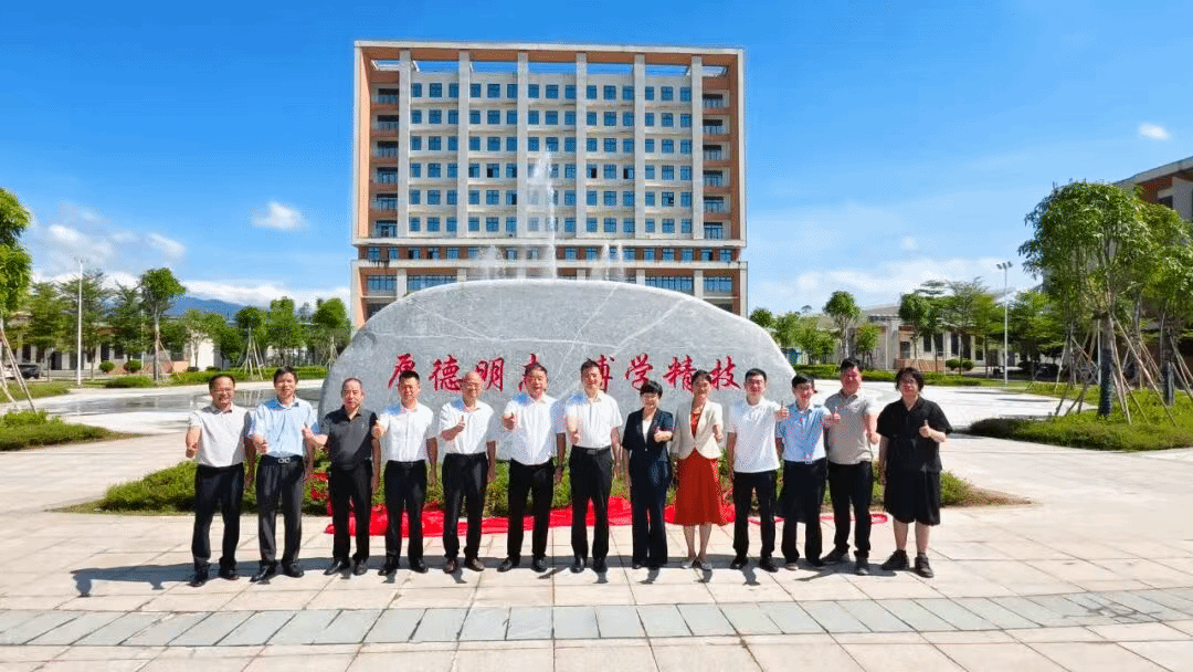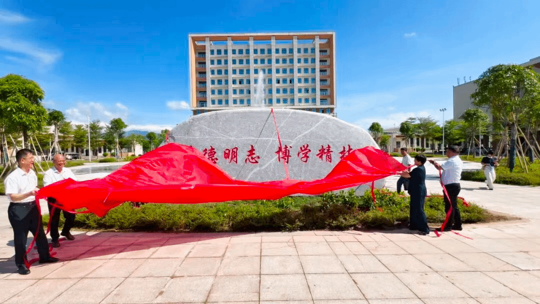仪式最后,全体与会嘉宾移步学院德技广场,共同为校训石揭牌。巨石上镌刻的“厚德明志,博学精技”八字校训,不仅为校园增添了新的人文景观,也是浙商民营企业主动履行社会责任的生动体现,更是校企战略合作迈向深化的重要象征。