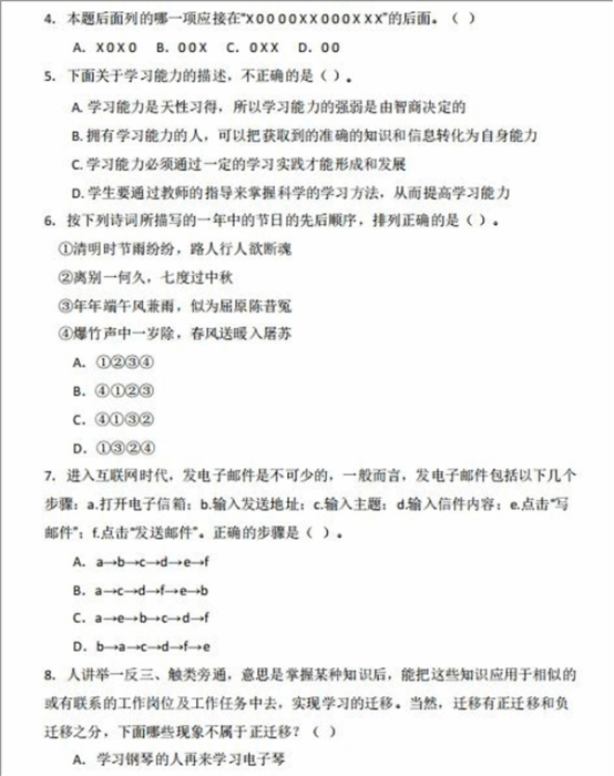 (1)学习能力:满分100分,共11道题。其中:单选题8题,每题8分;多选题3题,每题12分;
