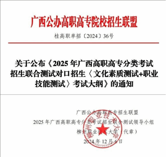 本考试大纲适用于2025年广西高职高专院校招生联盟对口招生的联合测试。