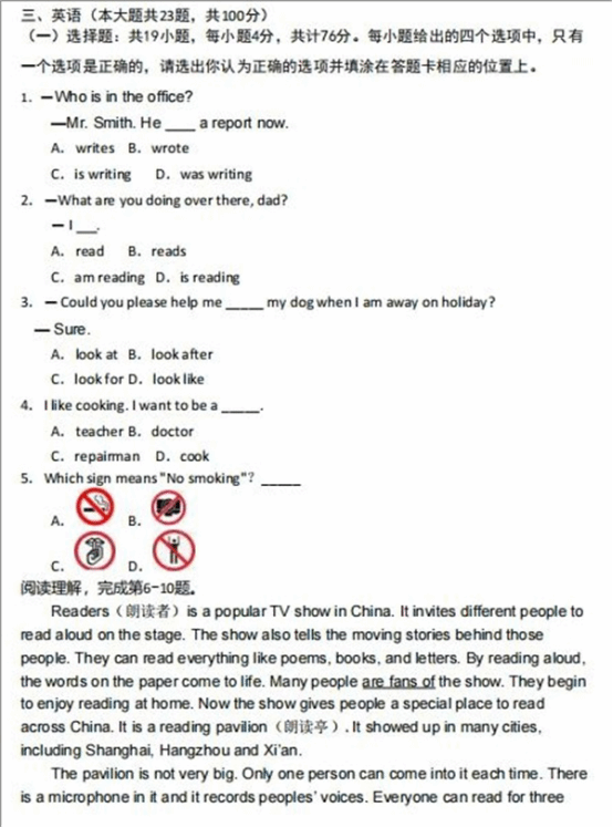 (一)文化基础测试试卷结构和内容