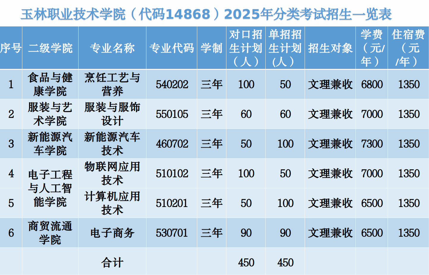 2025年pg游戏分类考试招生开设烹饪工艺与营养、服装与服饰设计、新能源汽车技术、物联网应用技术、计算机应用技术、电子商务共6个专业。各专业招生计划在广西高职高专招生网(https://www.gxzslm.cn/)和pg游戏电子模拟器招生网(https://zsw.ylzy.edu.cn/)均已公布。具体可参考以下表格: