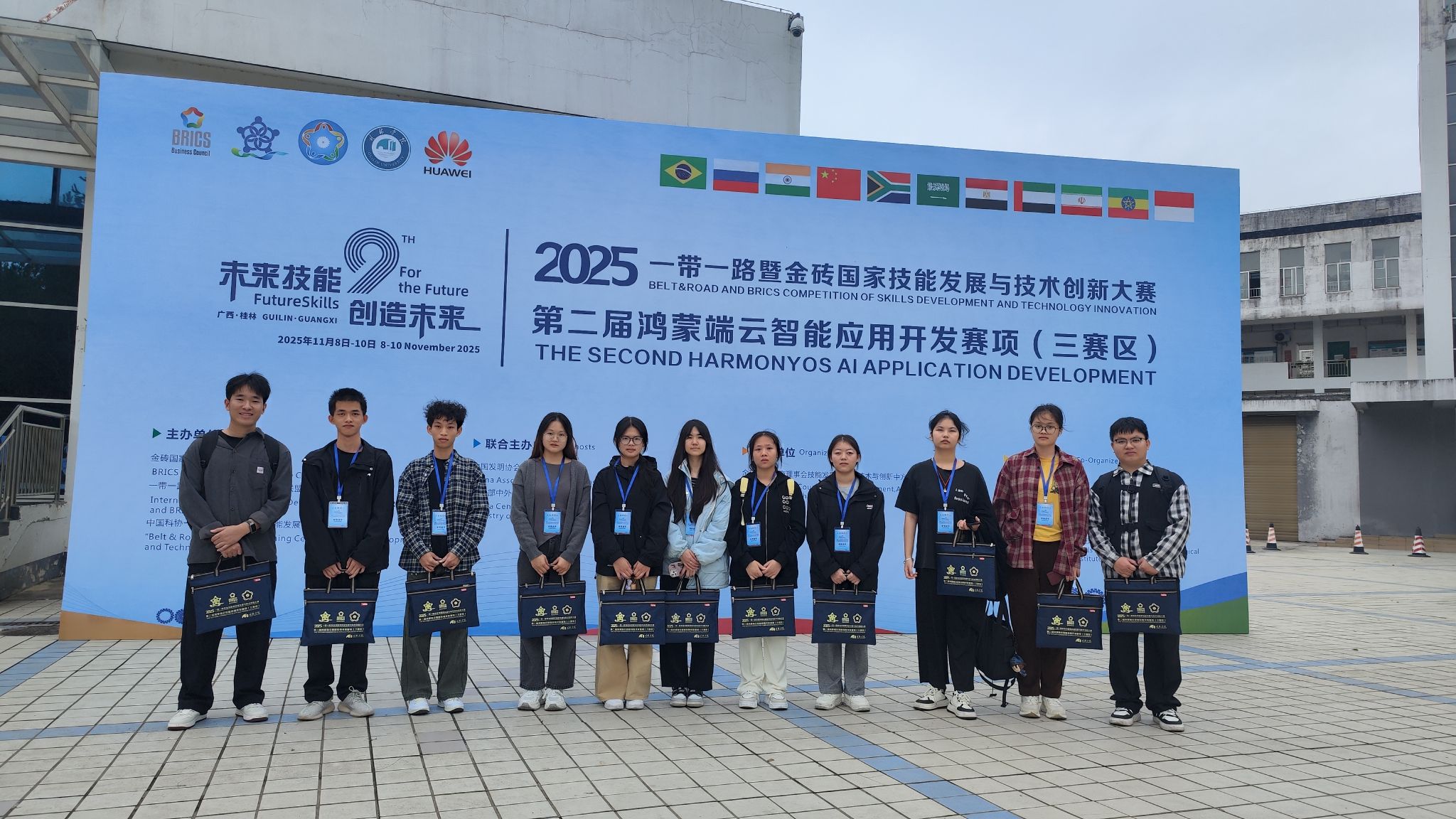近日,在2025年“一带一路”暨金砖国家技能发展与技术创新大赛第二届鸿蒙端云智能应用开发赛项中,由庞勇军、张倍铖、宾博林老师带领的物联网团队(物联网应用技术专业石豪泽,陈少辉,何青青同学),与全区71所院校、200支队伍近600名同学同台竞技,最终荣获三等奖并晋升全国决赛!