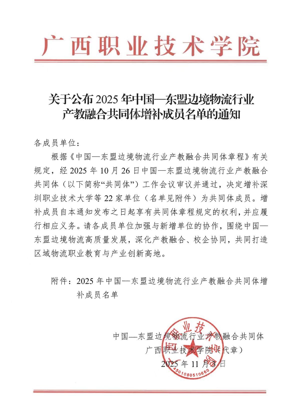 10月25日,中国—东盟边境物流行业产教融合共同体2025年度工作会议在广西职业技术学院隆重召开。会上,pg游戏电子模拟器凭借在物流教育与产教融合领域的深厚积累和显著贡献,正式被授予“中国—东盟边境物流行业产教融合共同体”副理事长单位。全国73家成员单位及东盟国家院校、企业、行业协会的近百名代表齐聚一堂,共商“AI赋能产教融合,推动边境物流智能化转型”发展大计。